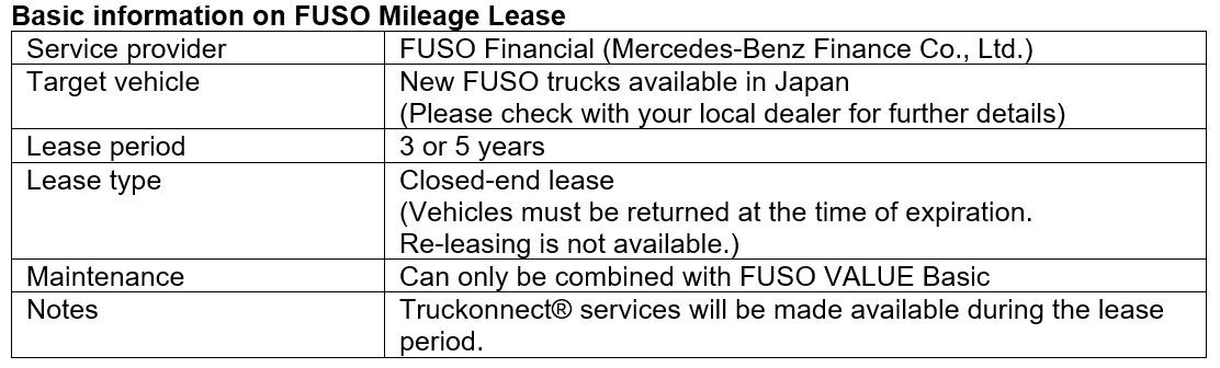 ・FUSO’s connectivity technology Truckonnect® supports the new leasing structure by monitoring traveled distance in real time